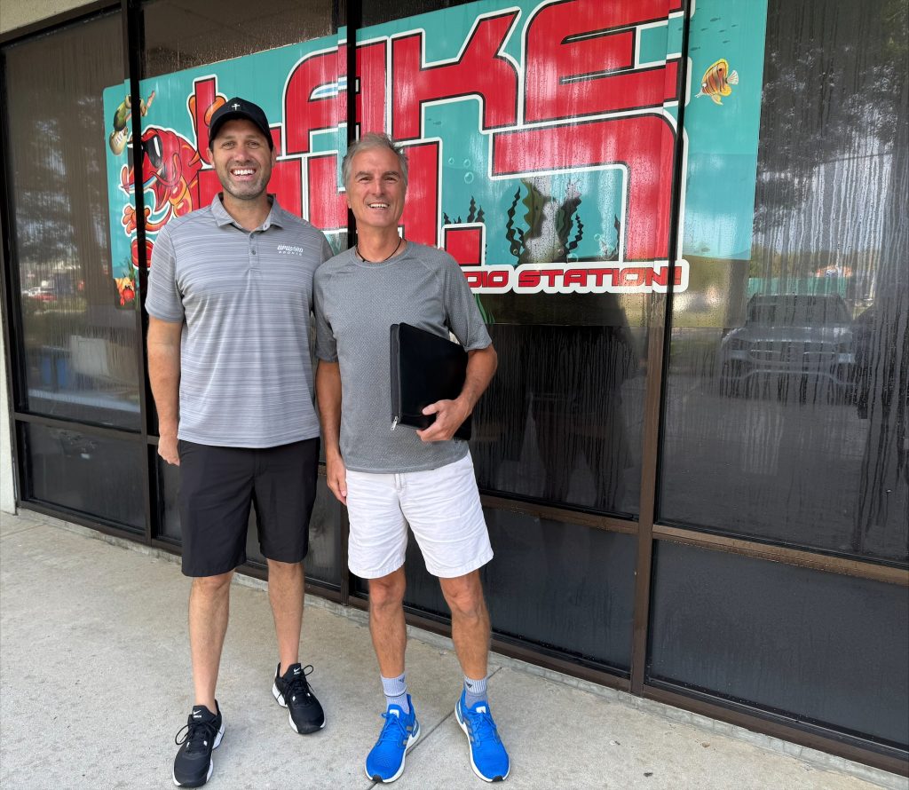 Josh and Gavin came in from First Baptist Church of Covington to talk about Upward Flag Football. They are signing up football players and cheerleaders right now.